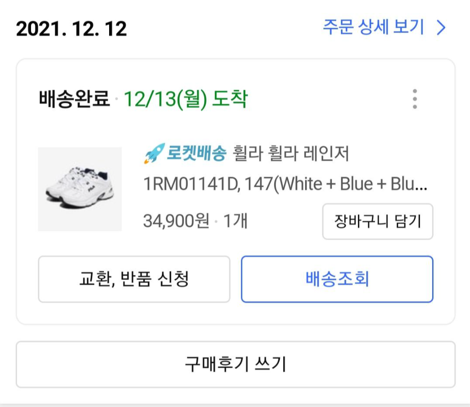 며칠 전에 쿠팡에서 휠라 레인저 운동화를 샀습니다!